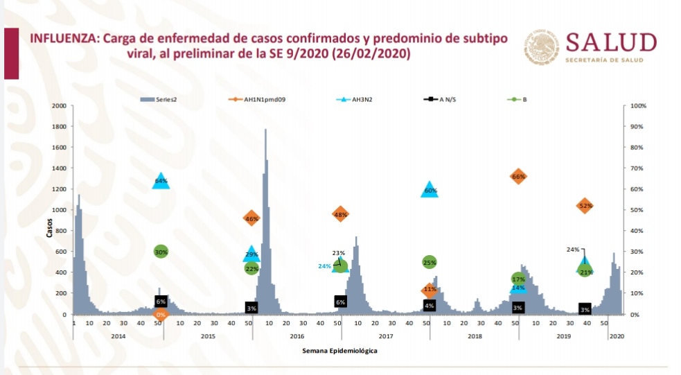 Lo que significan estas líneas es el número de casos de influenza estacional que México ha tenido entre octubre y hace dos semanas.