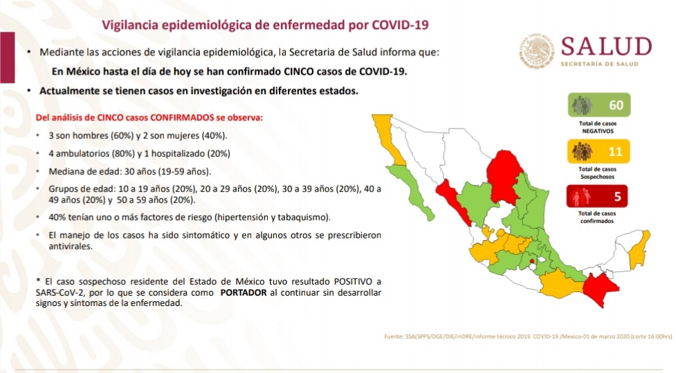 Tenemos cinco casos aquí en México que son casos importados, casos que han sido asintomáticos.